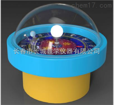 描述:此展品用以演示太阳、地球、月球的关系和由此产生的一些天文现象。为了模仿自然界的真实情况,中间的太阳采用发光的灯泡,以照亮地球和月球。地球倾斜地在轨道上绕日旋转,月球绕地球的轨道和地球绕太阳的轨道相交成一个角度。月球的盈亏、地球的自传和公转、昼夜和四季的交替等现象。